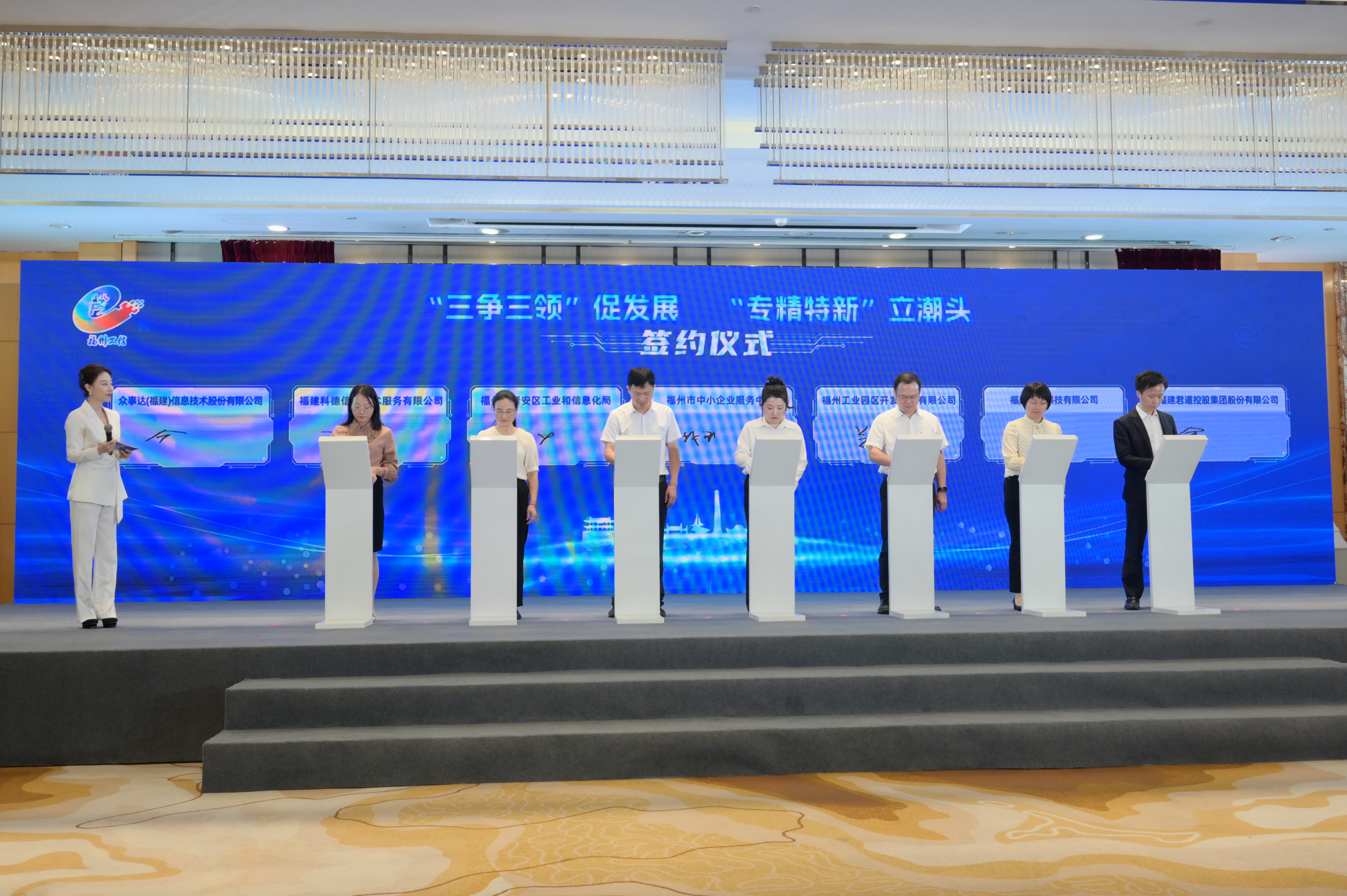 为了助力“专精特新”企业的培育与发展,当天,福州市“专精特新”企业服务基地筹建办公室也在福州工业园区开发集团有限公司揭牌,与会嘉宾通过现场连线见证了揭牌仪式。联创智信(福建)科技集团等8家企业代表分别与福州市中小企业服务中心等单位签订协议,意向入驻“专精特新”企业服务基地。